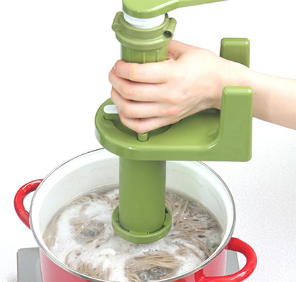 従来のそば打ちとは異なった画期的な方法で、こだわりの十割そばや、そば粉入り冷麺が手軽に作れます。